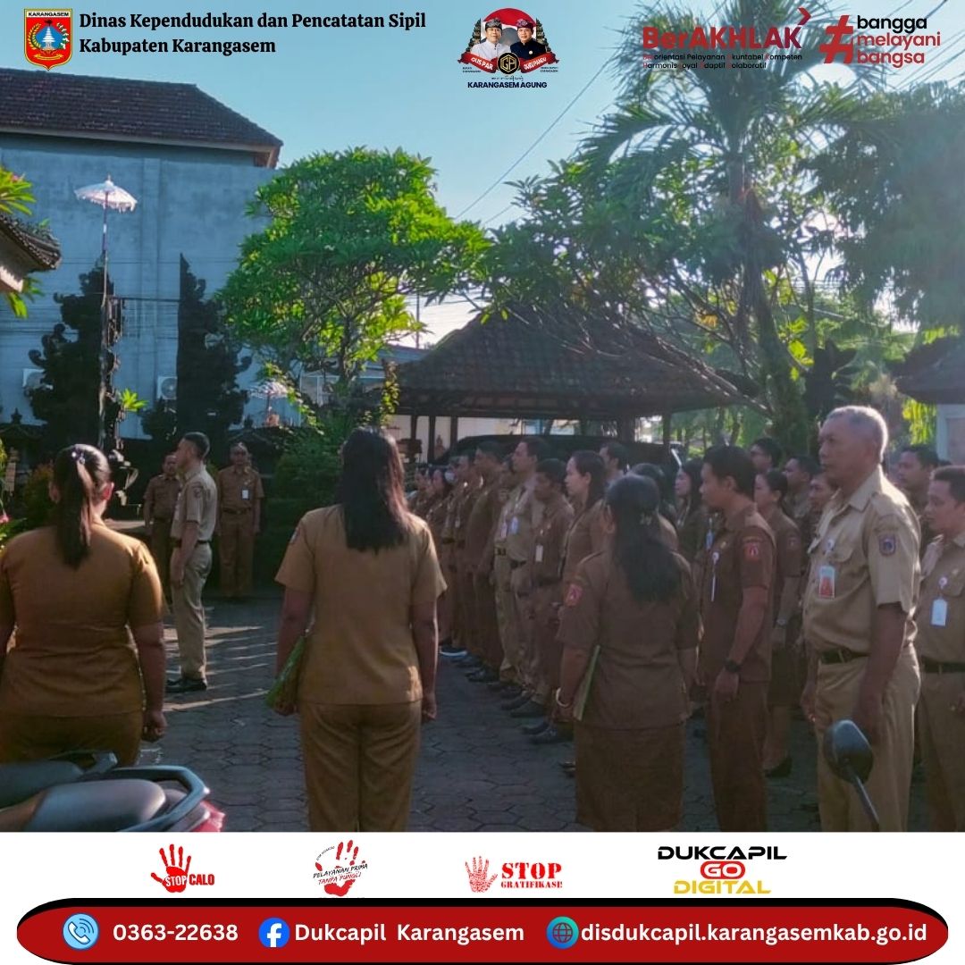 APEL PAGI PADA DISDUKCAPIL KABUPATEN KARANGASEM, SENIN 18 MARET 2024
