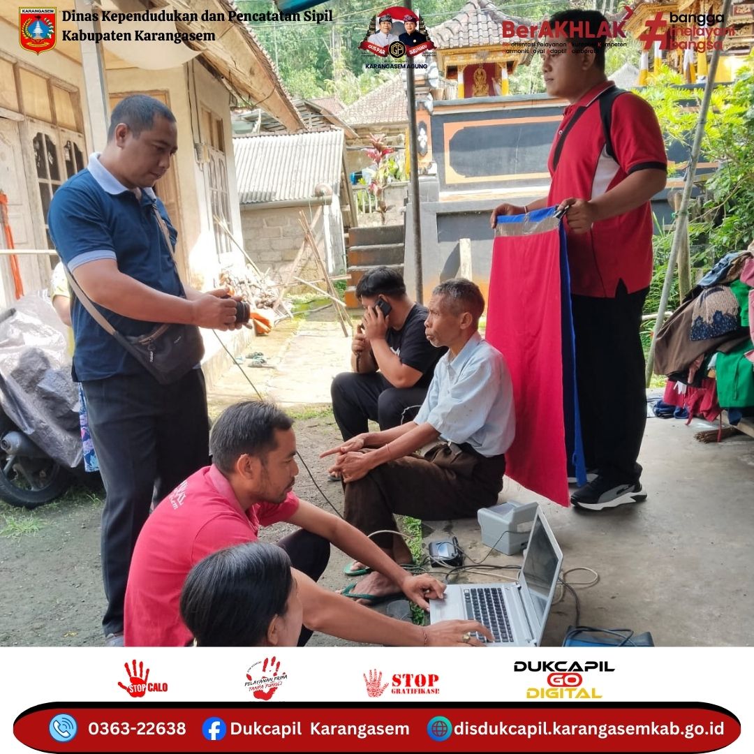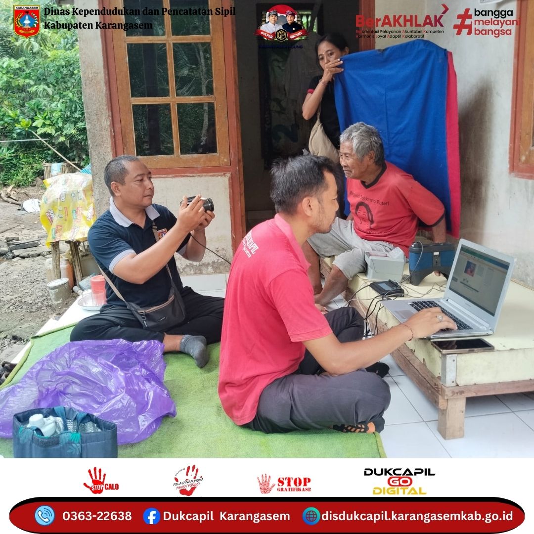 Rabu, 26 November 2025 Pemerintah Kabupaten Karangasem melalui Dinas Kependudukan dan Pencatatan Sipil melaksanakan pelayanan perekaman KTP El bagi Lansia (Lanjut Usia), ODGJ (Orang Dengan Gangguan Jiwa), dan Disabilitas di Desa Duda Timur, Kecamatan Selat.