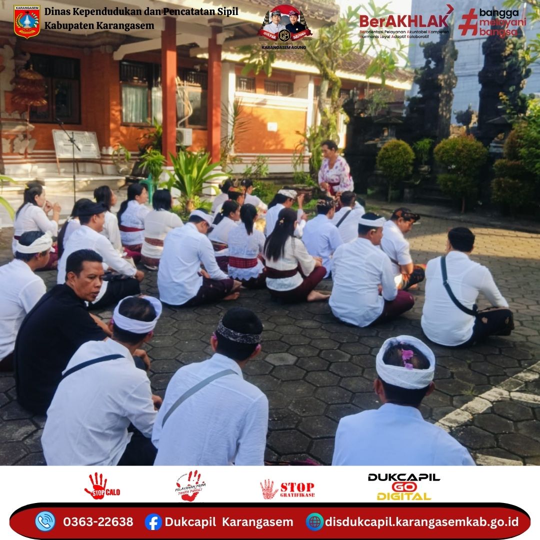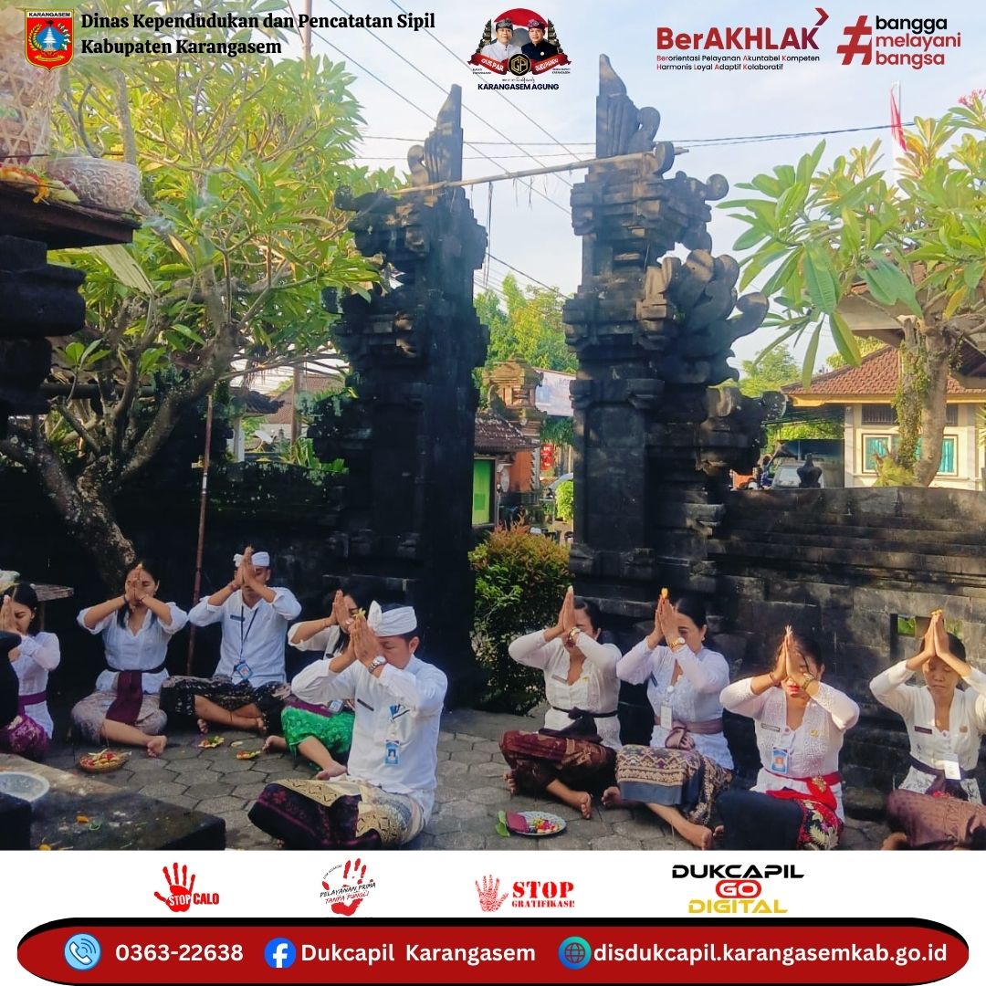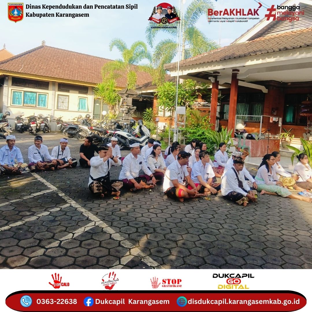 Dinas Kependudukan dan Pencatatan Sipil Kabupaten Karangasem melaksanakan persembahyangan bersama dalam rangka Rahina Tilem Kanem, yang dipimpin oleh Bapak Sekretaris Dinas beserta seluruh pegawai.