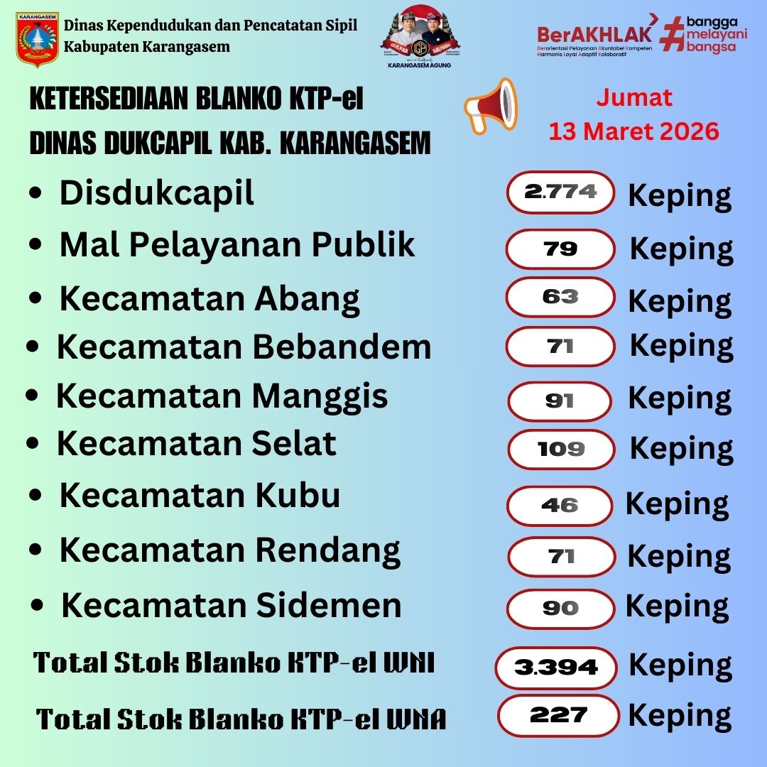 UPDATE BLANKO KTP-EL DISDUKCAPIL KARANGASEM 13 Maret 2026