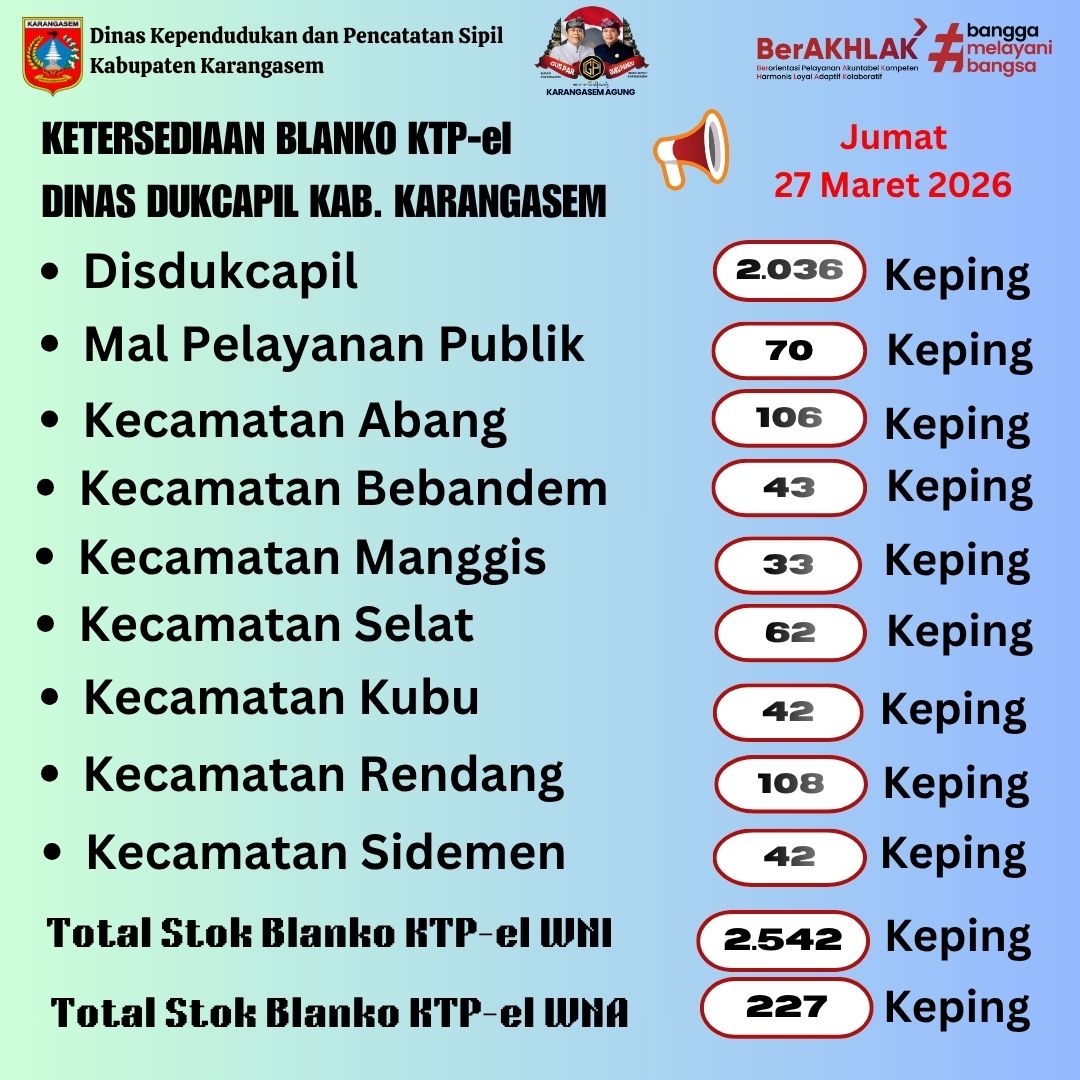Update Sisa Blangko KTP-el 27 Maret 2026
