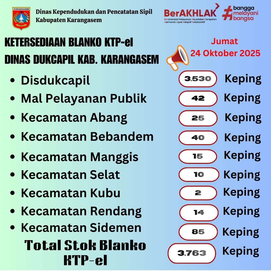 UPDATE BLANKO KTP-EL DISDUKCAPIL KARANGASEM 24 Oktober 2025