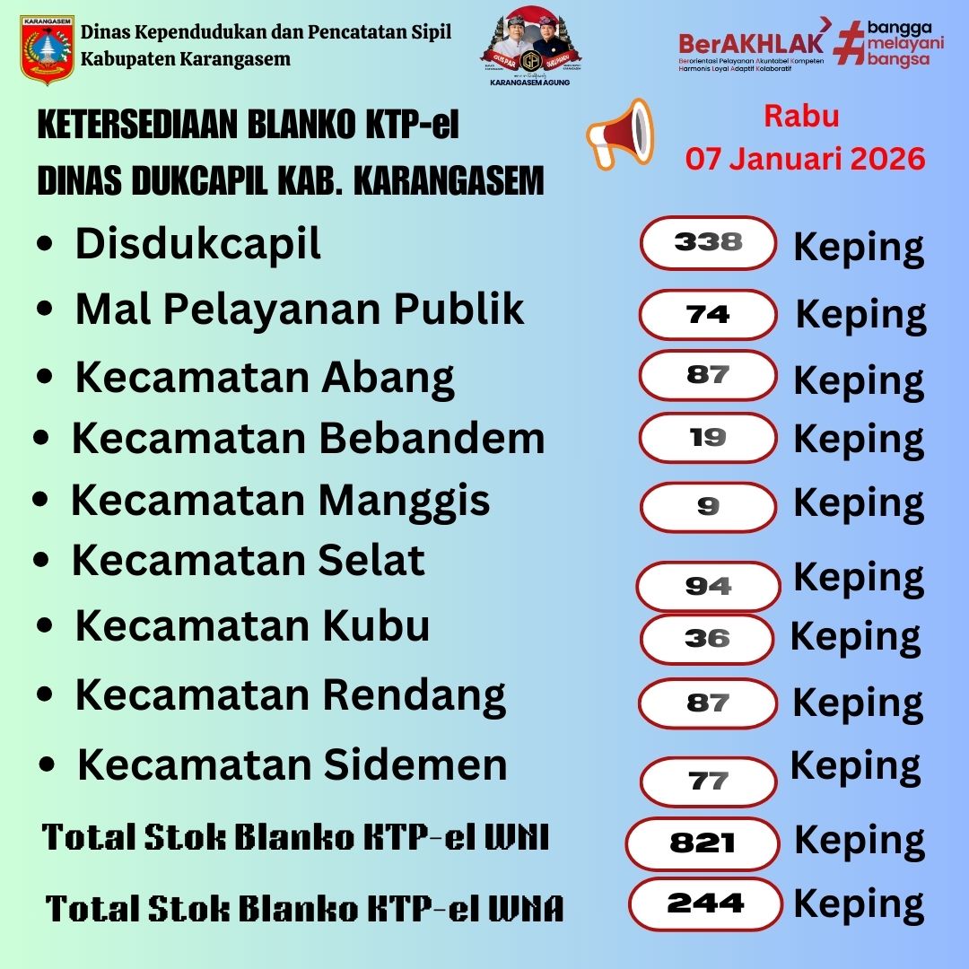 Update Sisa Blangko KTP-el 07 Januari 2026