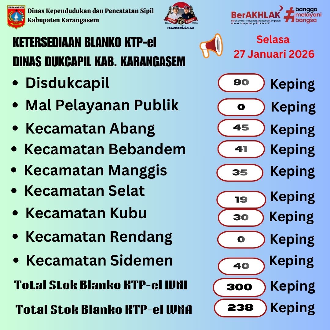 Update Sisa Blangko KTP-el 27 Januari 2026