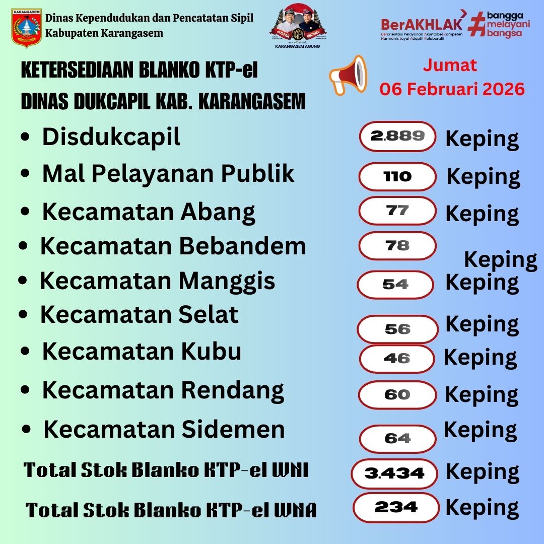 Update Sisa Blangko KTP-el 06 Februari 2026