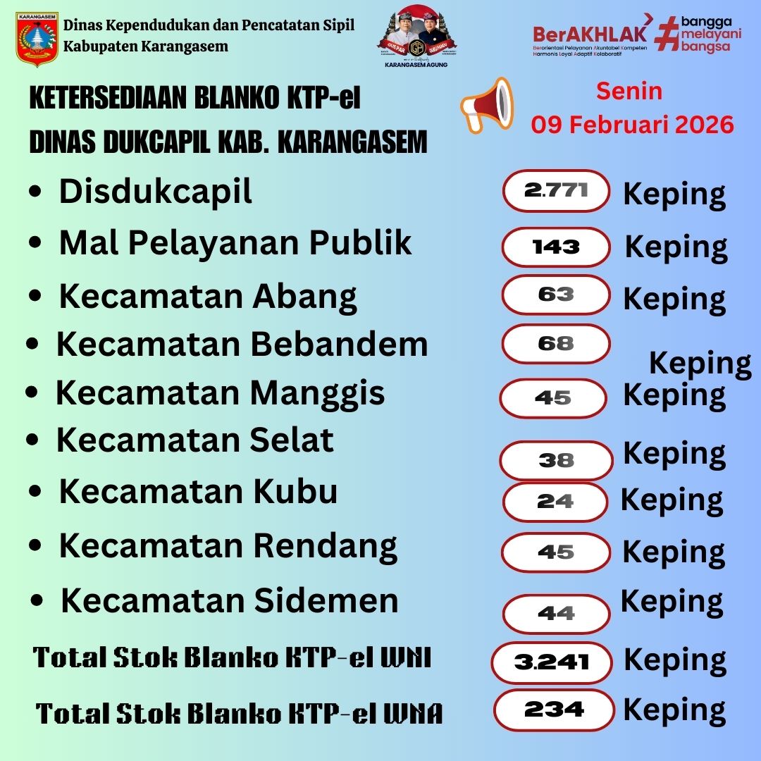 Update Sisa Blangko KTP-el 09 Februari 2026