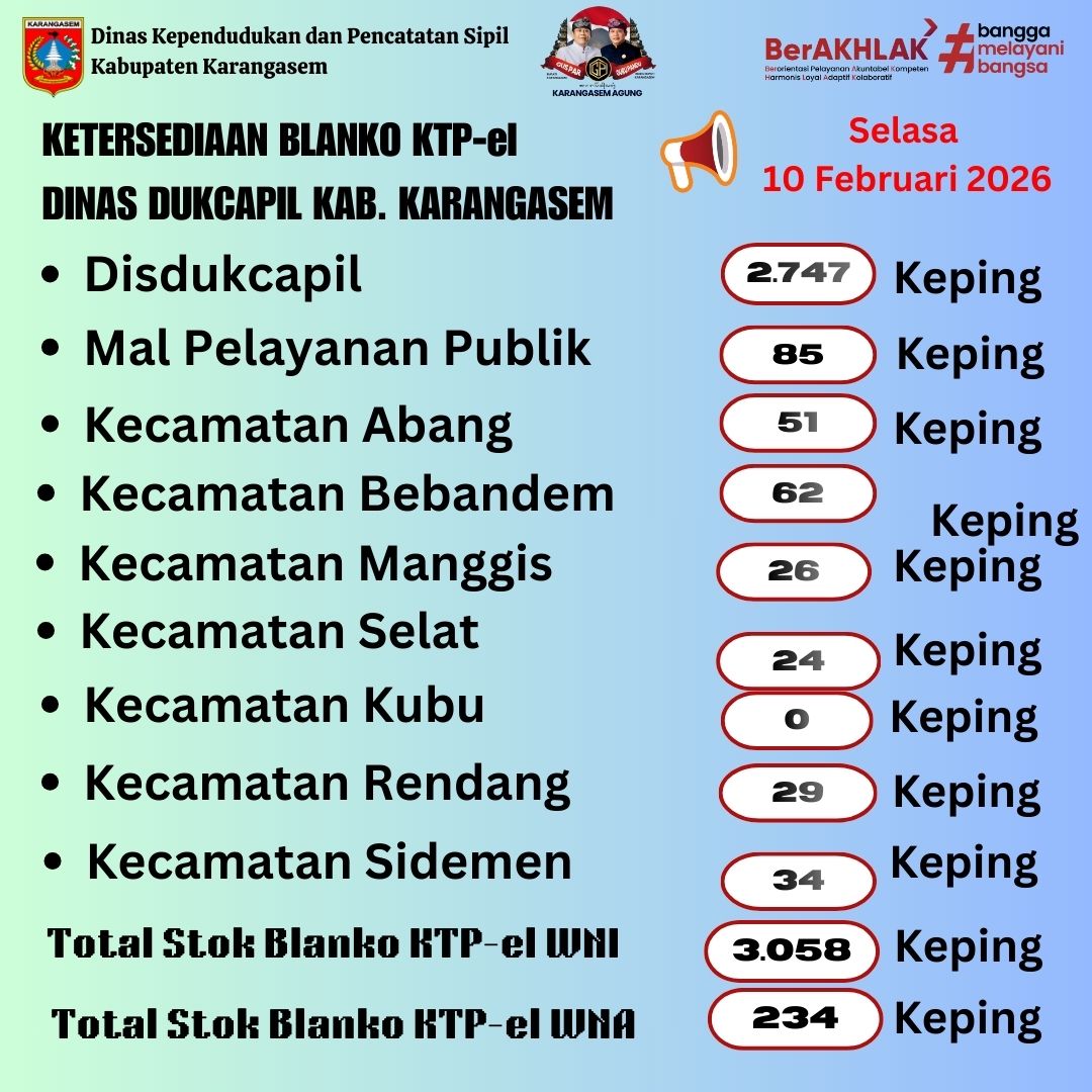 Update Sisa Blangko KTP-el 10 Februari 2026