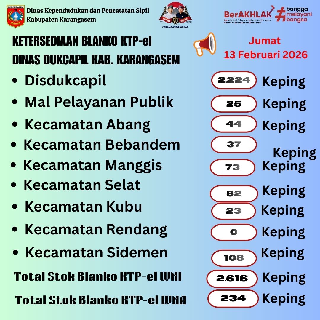 UPDATE BLANKO KTP-EL DISDUKCAPIL KARANGASEM 13 FEBRUARI 2026