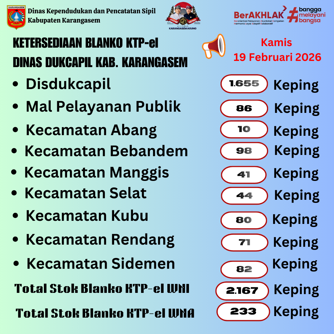 Update Sisa Blangko KTP-el 19 Februari 2026