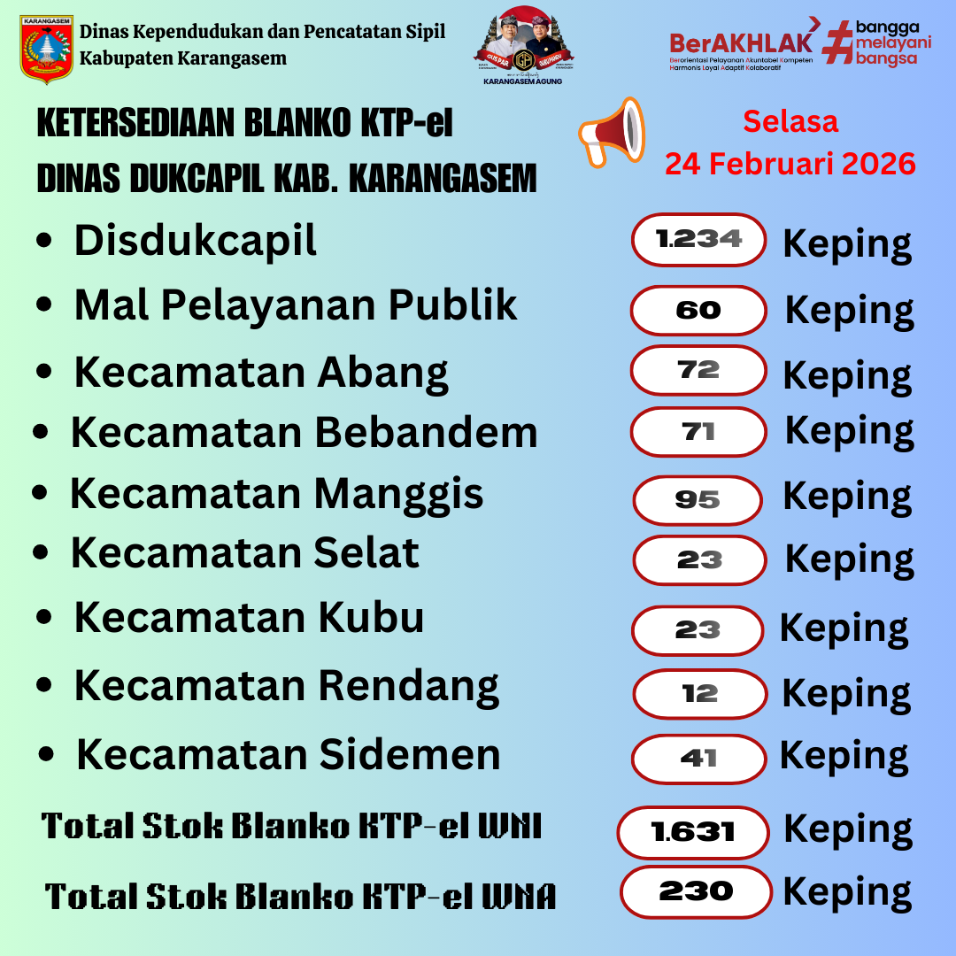 Update Sisa Blangko KTP-el 24 Februari 2026